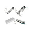 Multiherramienta metálica plegable de 10 funciones, con llavero. Incluye mini-regla en cm. y pulgadas. Presentación en estuche de polyester negro...