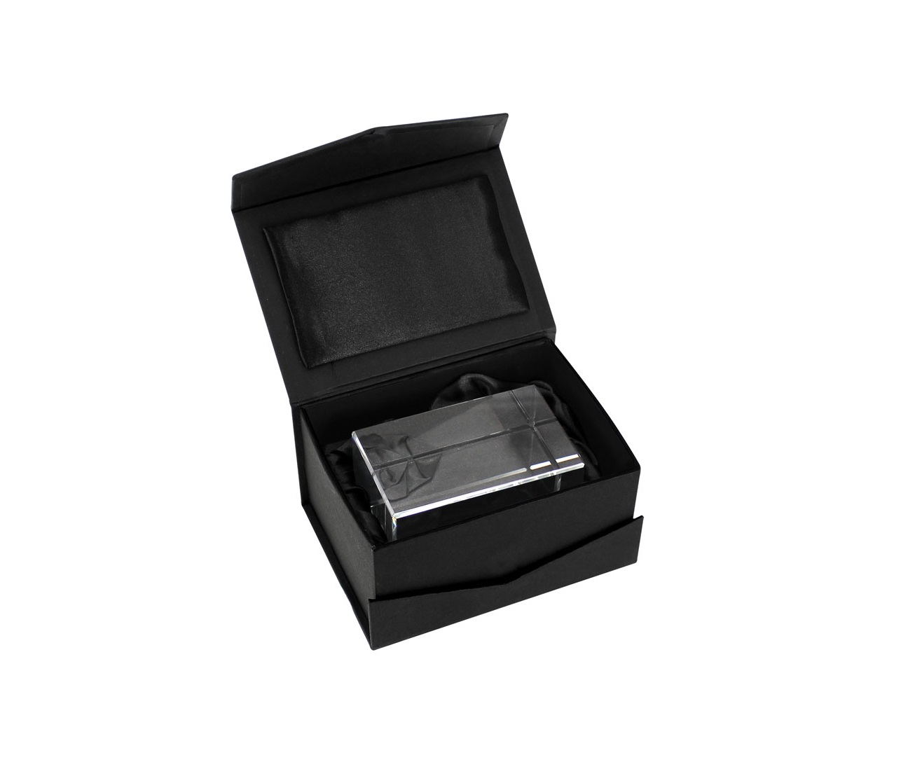 Bloque rectangular de Cristal modelo “Solid”. Bordes biselados. Presentación en caja de cartón forrado negro.