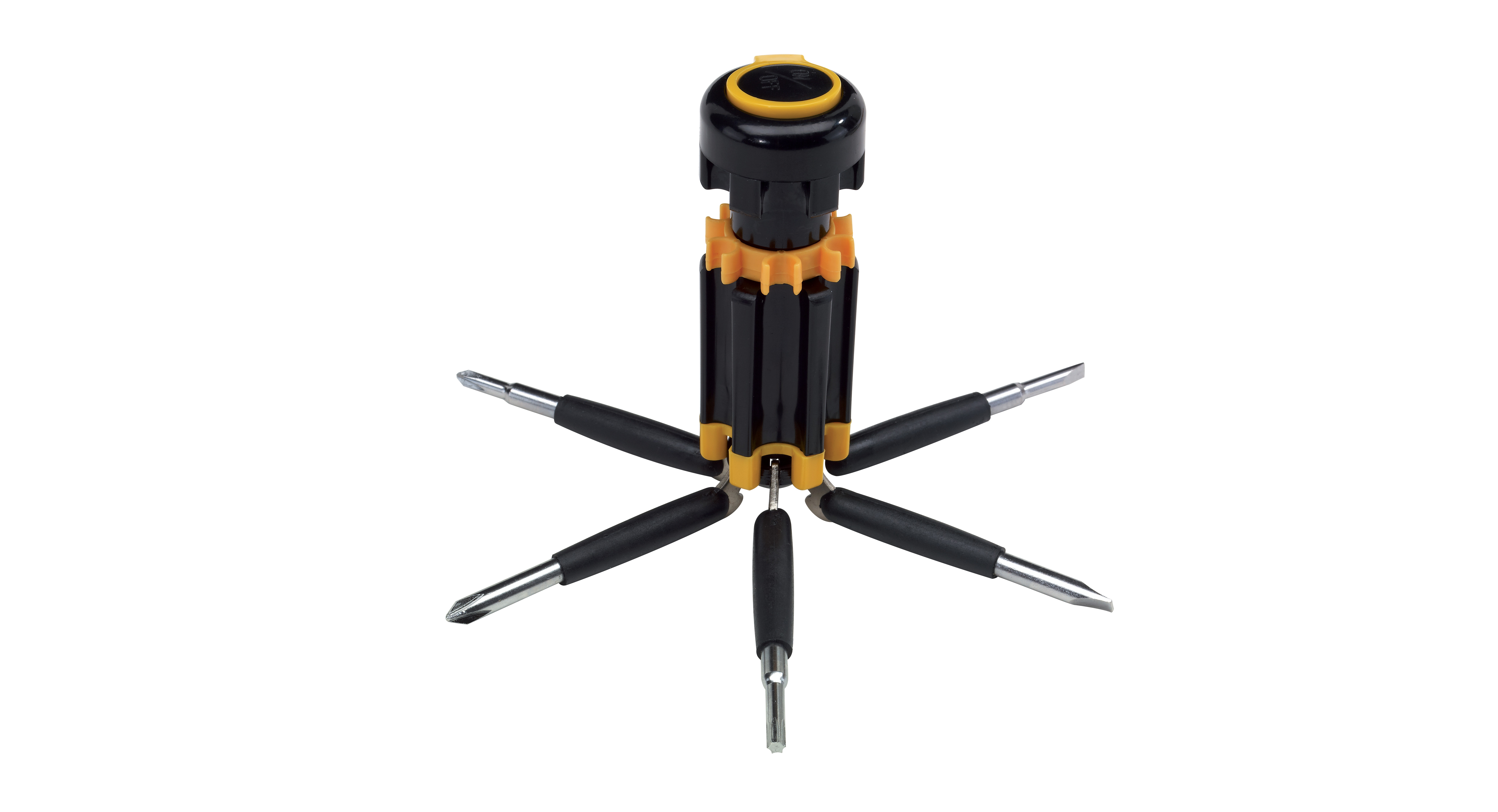 Multiherramienta metálica plegable de 10 funciones, con llavero. Incluye mini-regla en cm. y pulgadas. Presentación en estuche de polyester negro...
