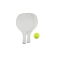 Set de 2 Paletas de Playa de madera terciada 9mm., esmaltadas color blanco. Incluye pelota de tenis. Presentación en bolso de tela ecológica TNT negra y malla, con colgador.
