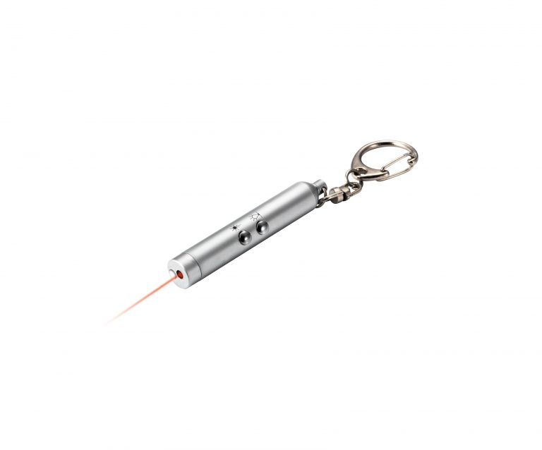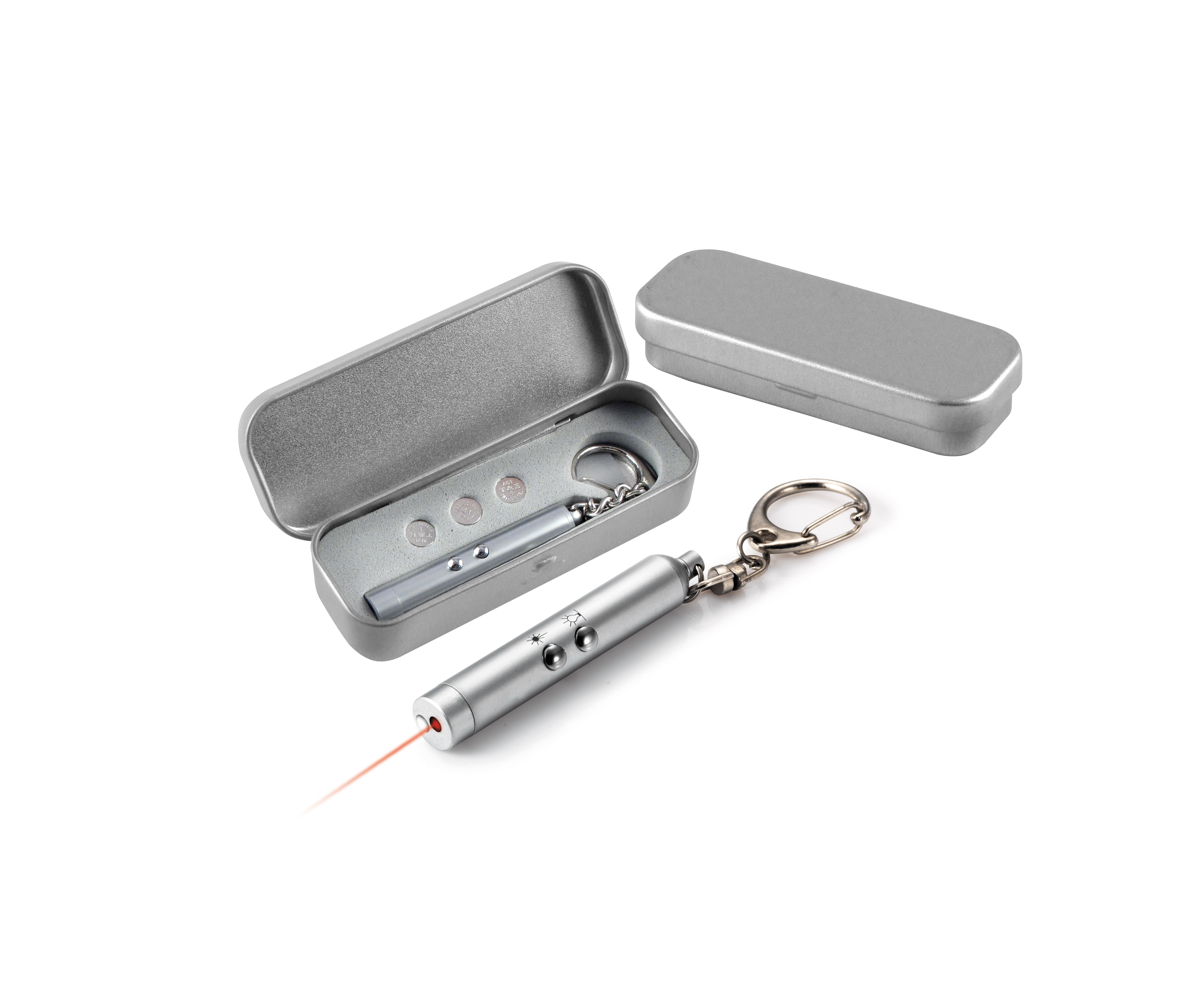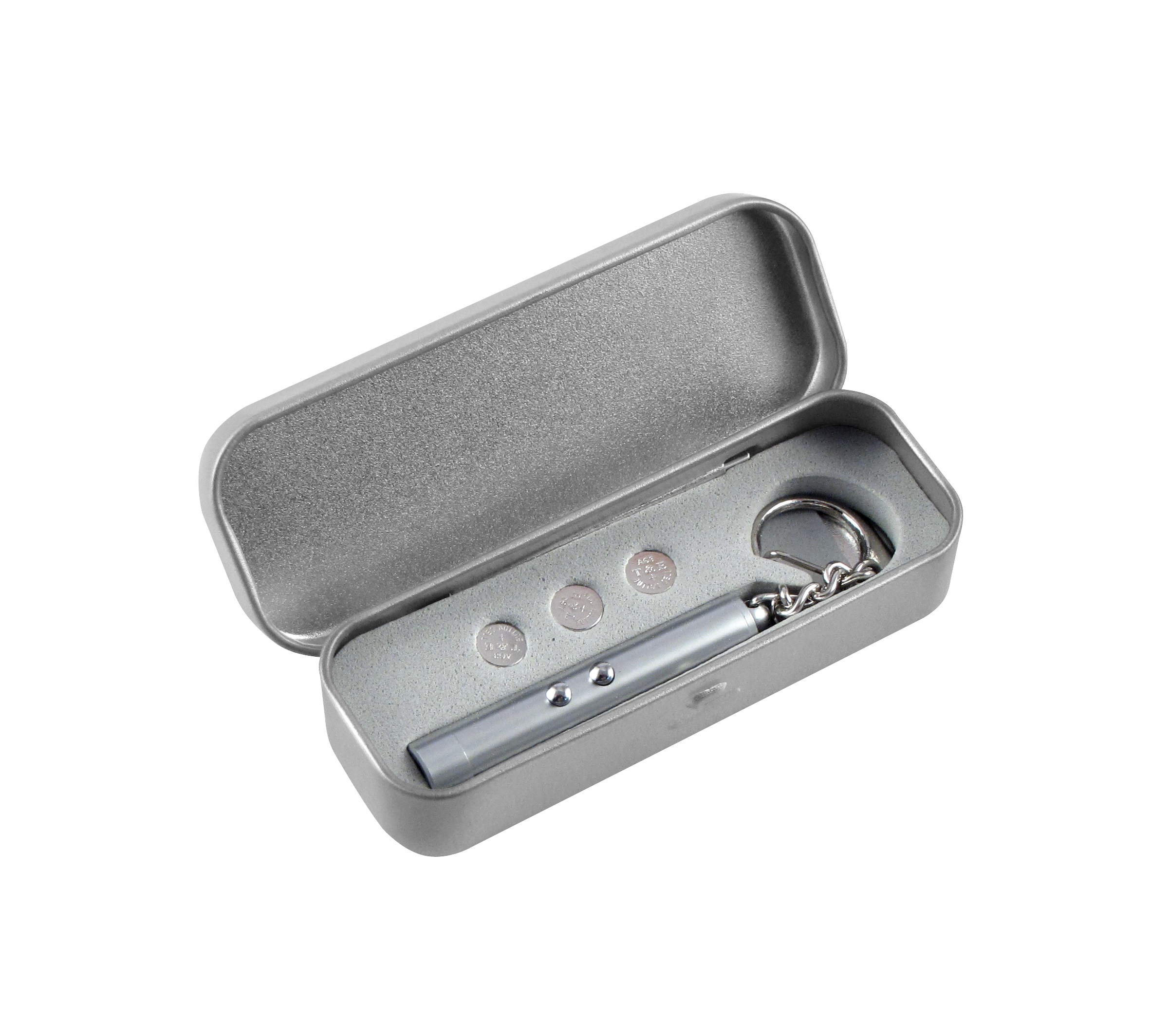 Llavero Metálico con Puntero Láser y Linterna LED. Presentación en Estuche de Aluminio.